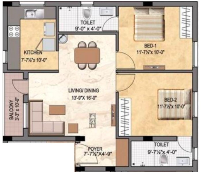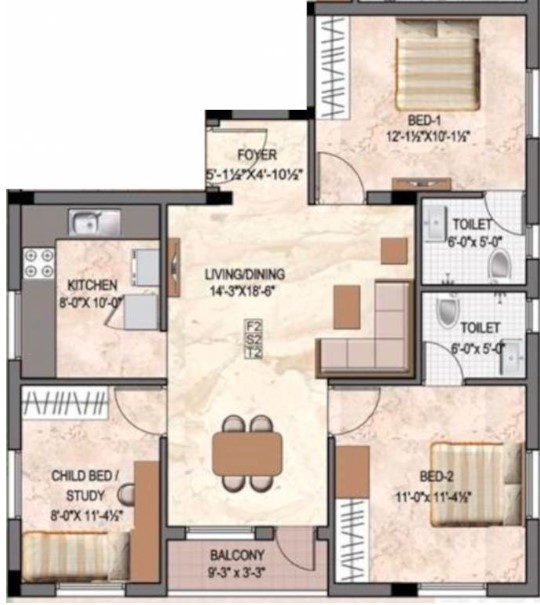 Unit sizes of the Swandras Rose ranges from 980 - 1141 Sq.Ft .