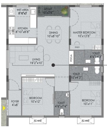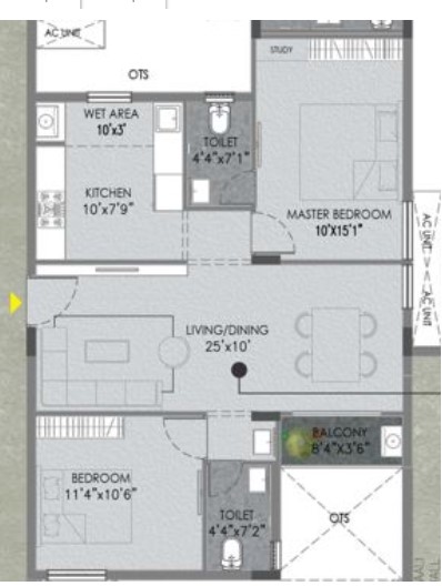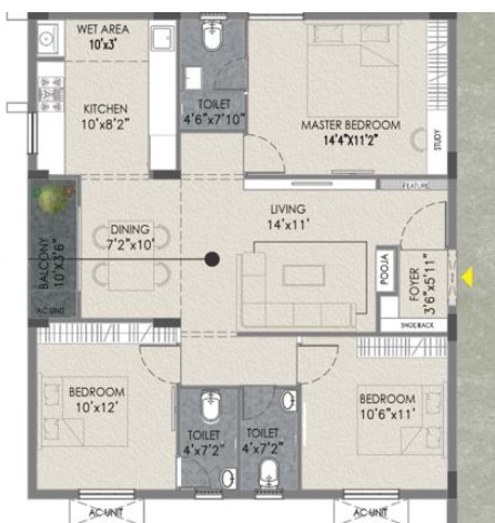 Unit sizes of the The Banyan ranges from 925 - 1386 Sq.Ft .