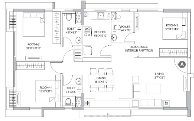Unit sizes of the The Crown ranges from 850 - 1760 Sq.Ft .