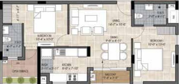 Unit sizes of the The Edge ranges from 876 - 1447 Sq.Ft .