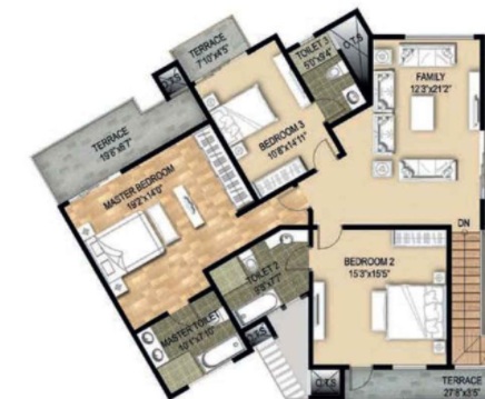 Matt finish tiles in the balconies and open terraces (wherever applicable)