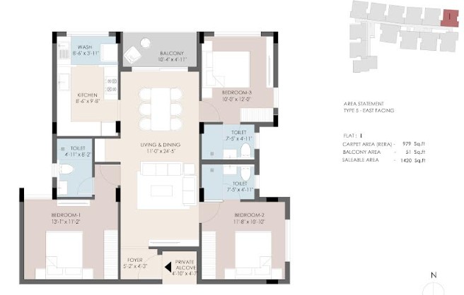 Now, what you’re getting here is simple and focused. All units are 3 BHKs, which already tells you they’re aiming at families who want room to breathe. The layout is a Stilt + 5-floor structure—no towering chaos, no endless lifts to wait for. Just five floors of living space in a single block, thoughtfully arranged.