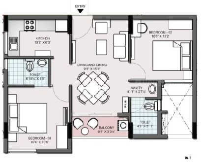 TVS Emerald Atrium in Perungalathur, a residential project, provides serene living and modern architecture for a contemporary lifestyle. With a 2.5-acre span and 256 units with 2 BHK, it offers ample space for the residents to live in a peaceful environment. The units range in size of 954 sq. ft., and are crafted for promising natural ventilation and light, developing a comfortable and refreshing living environment.
