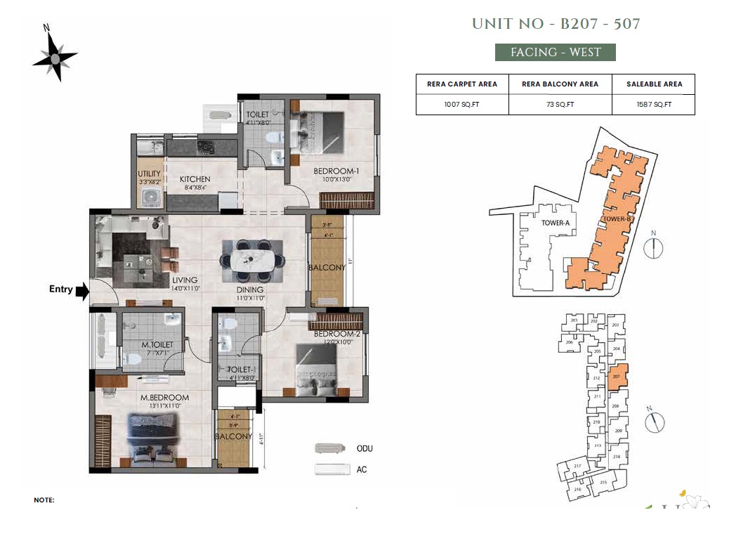 Location-wise, the residents of 130 units have great connectivity to major roads and the rest of the city. When choosing your slice in this project, you can easily select from 975 Sq. Ft. to 1665 Sq. Ft. 2 or 3 BHK? That's completely based on your family's requirements.