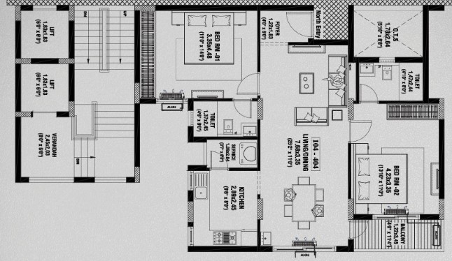 Common area and lift lobby will be finished with Porcelean/ Ceramic tiles. Ground floor lift lobby will be finished with granite, staircase will be finished with granite stone as per architect's design.