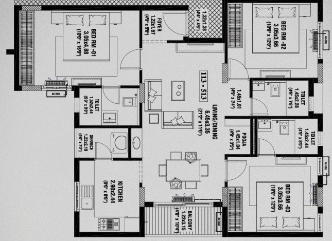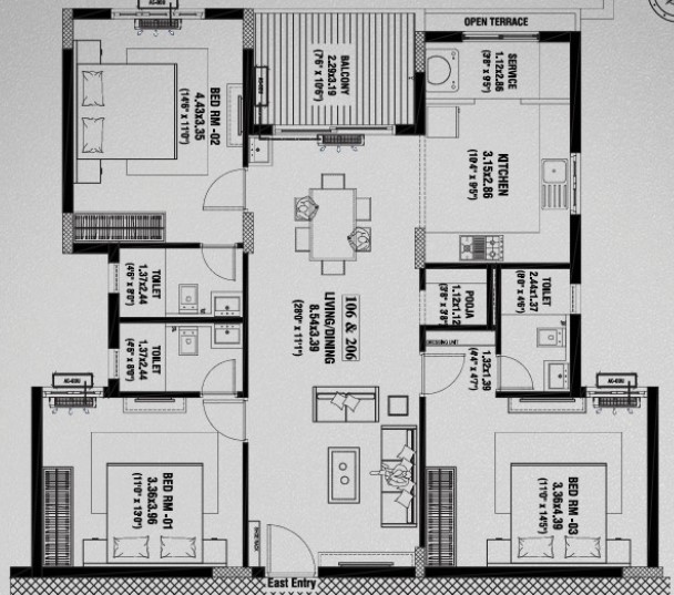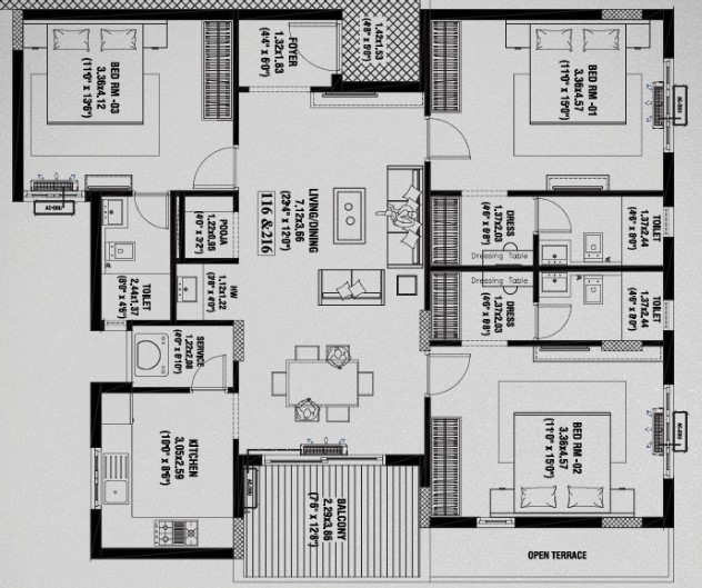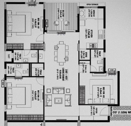vProvision for exhaust fan, refrigerator and chimney sleeve will be provided as per architect's design.