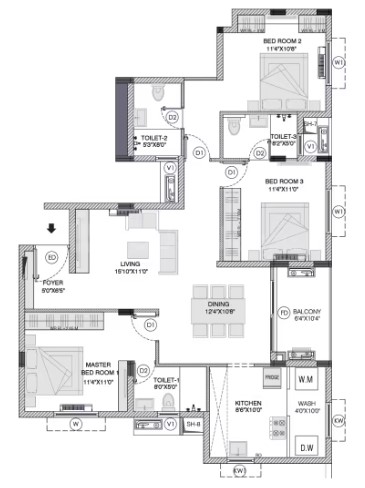 The homes come in 2 and 3 BHK formats, and honestly, the layout’s practical. Not too tight, not too massive either. Carpet feels right. Built-up areas range from 1040 to 1577 sq.ft, so there’s enough breathing room, whether you’re a small family or just starting out.