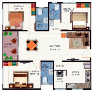 Unit sizes of the Urbanrise The Lakes Edge ranges from 998 - 1578 Sq.Ft .