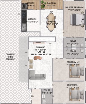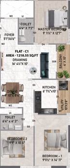 Unit sizes of the Vakaman Virtue Silver Oak ranges from 1215 - 1636 Sq.Ft .