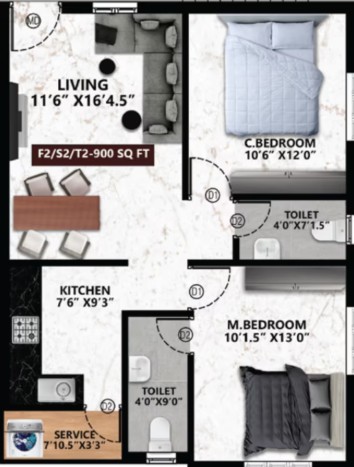 Viva Vitus sits quietly in Kolapakkam, offering a kind of everyday ease that’s getting harder to find. A single block with twelve homes, rising ground plus three floors, the project keeps things simple,on purpose. These 2 BHK flats, sized between 900 and 910 sq. ft., are built around what most of us actually need. Not sprawling. Not squeezed. Just enough room for daily life to unfold without fuss. The kind of space where the kitchen feels part of the rhythm, where the living room lets in light, and where every doorway makes sense.