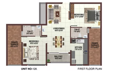 PRIVATE OPEN TERRACE (IF APPLICABLE) : Anti-skid ceramic tiles of size 300x300m.