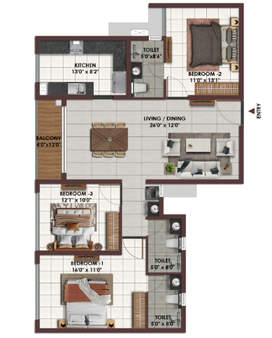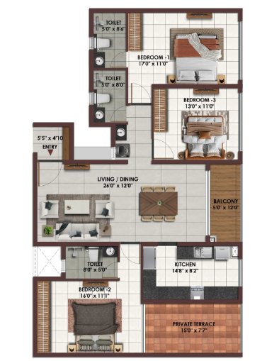 Unit sizes of the Casagrand Keystone ranges from 1167 - 1776 Sq.Ft .