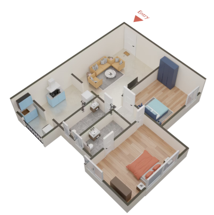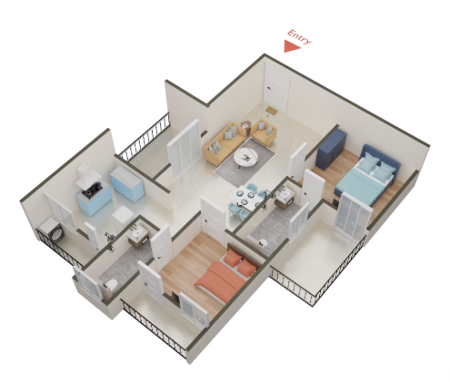 Unit sizes of the Greenfield Bougain Villea Apartment ranges from 700 - 1036 Sq.Ft .