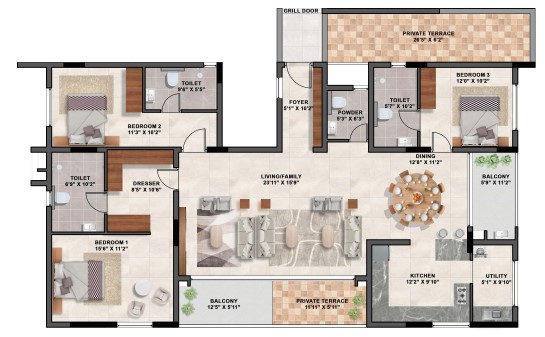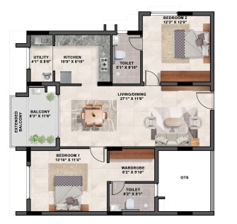 Unit sizes of the Infinium Lotus Meadows ranges from 1380 - 2431 Sq.Ft .