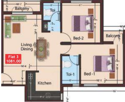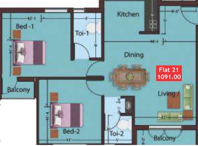 2'x2' Vitrified Tiles flooring in all the rooms.