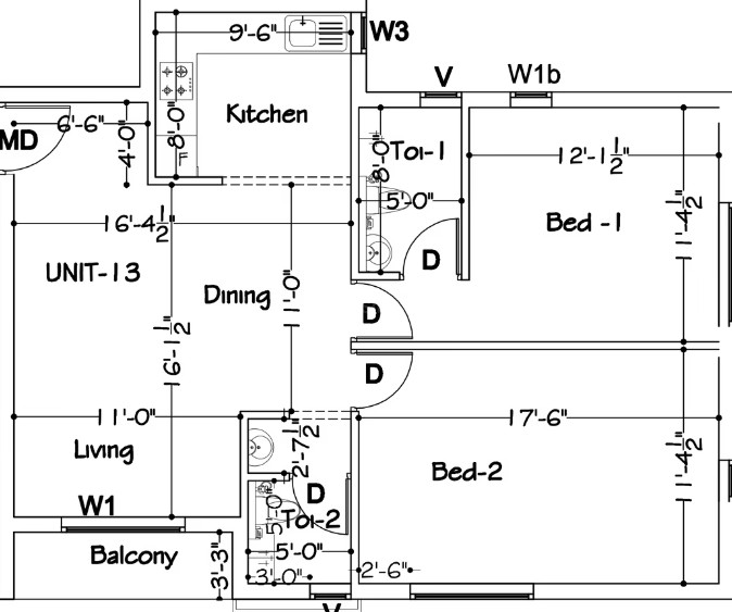 Doors : Main door with Teak Frames & Panel Door with brass fitting. Inner doors will be flush doors with painted finish.