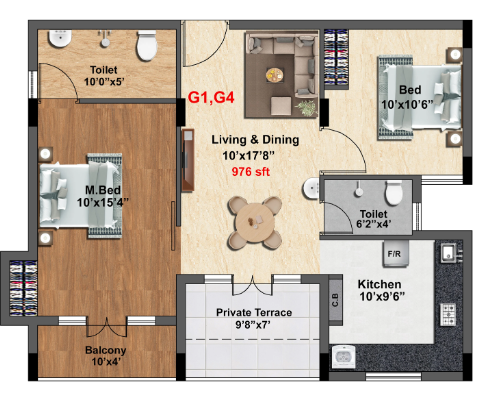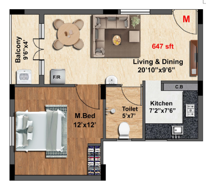 Unit sizes of the Stepsstone Aalam ranges from 647 - 976 Sq.Ft .