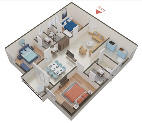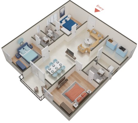 Backup Power: Generator with acoustic enclosure to energise all common areas, lifts, pumps, and all points within the flat (excluding ACs and geysers).