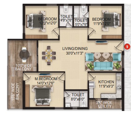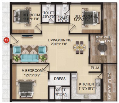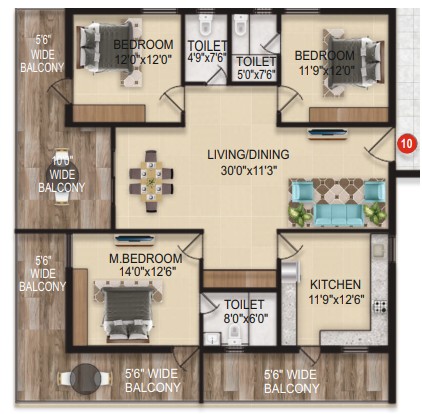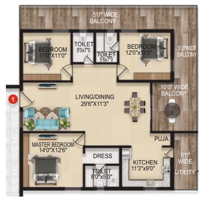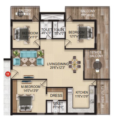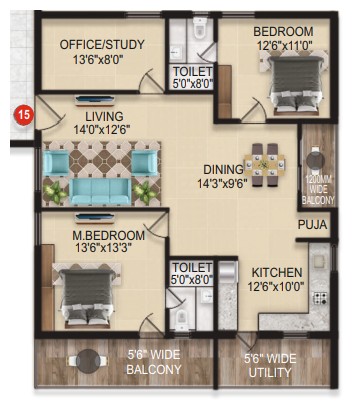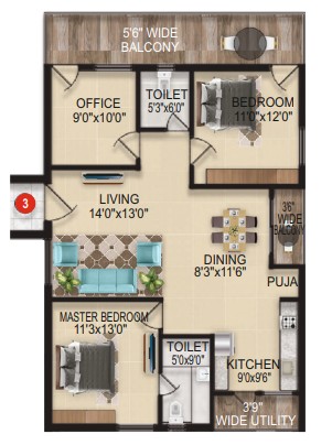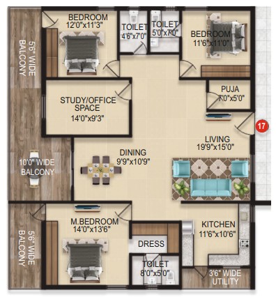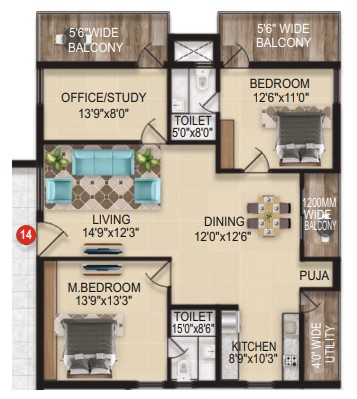 Unit sizes of the Anmol Terrasa ranges from 1175 - 2405 Sq.Ft .