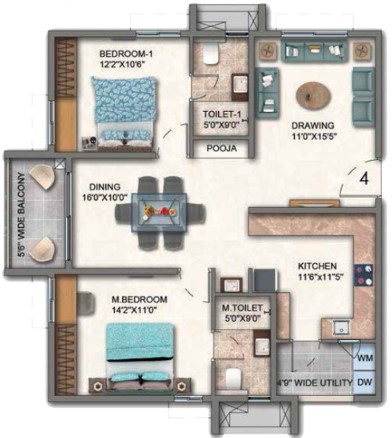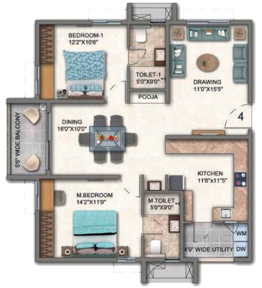 Dishwasher/Washing Machine: Provision for Washing Machine & Wet Area for Washing Utensils and dish washer provision.