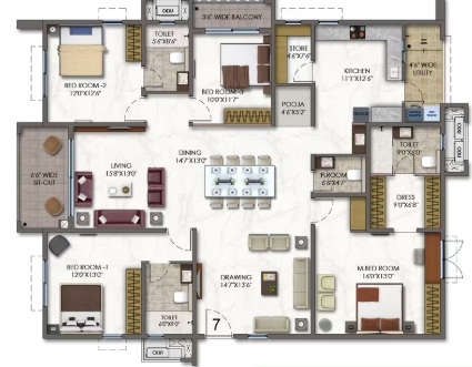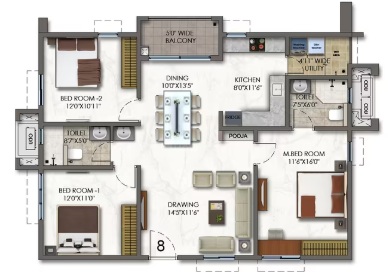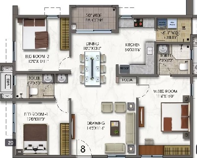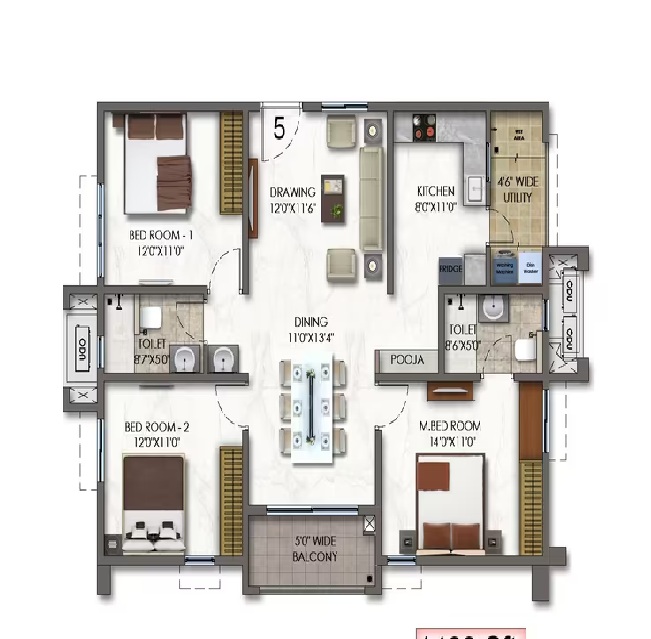 Specifications: Two high-speed automatic passenger cum service lift per block with rescue device with V3F for energy efficiency of reputed make for each tower with CCTVs inside the lifts.