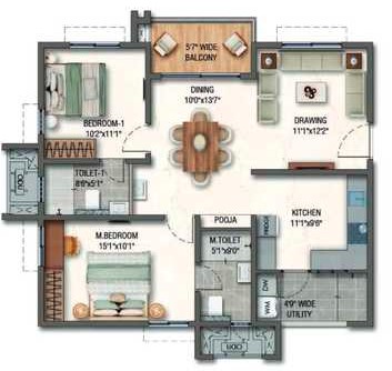 Washing Machine: Provision for Washing Machine & Wet Area for Vessel Washing etc.