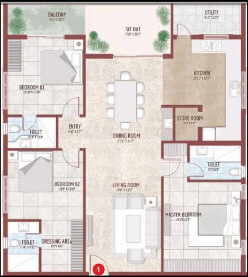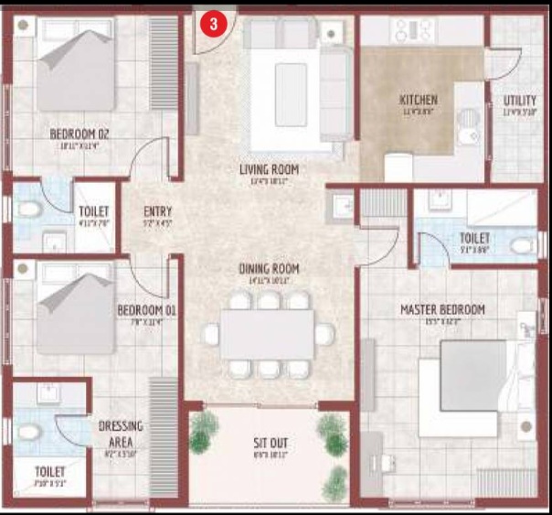 A 3 BHK apartment has been designed with spacious interiors, natural light, and very trendy looks. All Aria apartments fit into the figurative explanation: refinement and comfort. Modern architecture just adds to the superior construction and smart use of space, creating an ideal residence for families, professionals, and investors seeking high-end urban living.