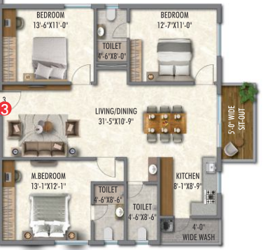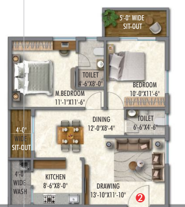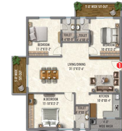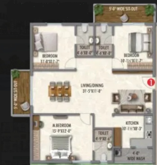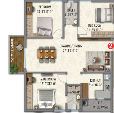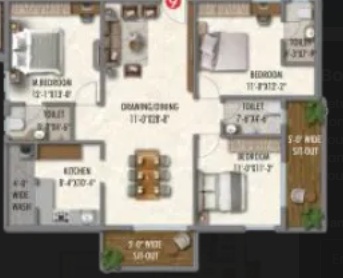 Unit sizes of the Arkala Life ranges from 1112 - 1825 Sq.Ft .