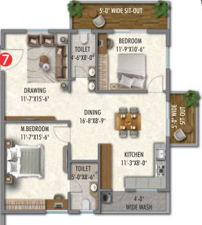 Drawing, Dining, Living, Bedrooms, Kitchen: 600X600 mm sized double charged Vitrified tiles of reputed brand.