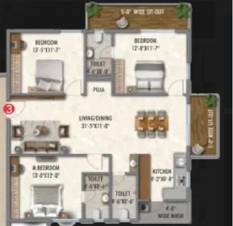 Main Door: Hardwood frame and teak finished flush shutter with melamine spray polish with reputed hardware.