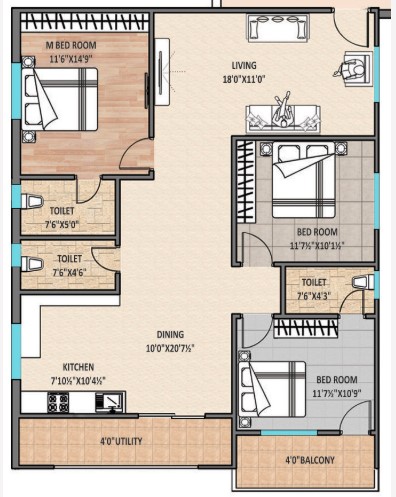 Bathrooms: Anti-Skid Ceramic Tiles of reputed make.