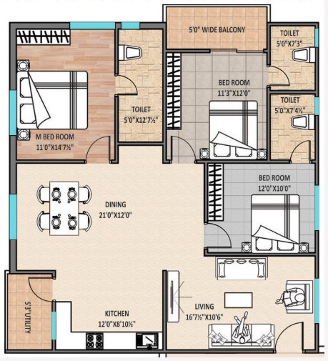 Utility/Wash Area: Provision for Washing Machine & wet area for Washing Utensils etc.