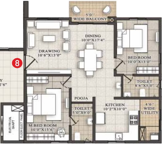 Master Bed Room: 800x800 mm Double charged vitrified tiles.