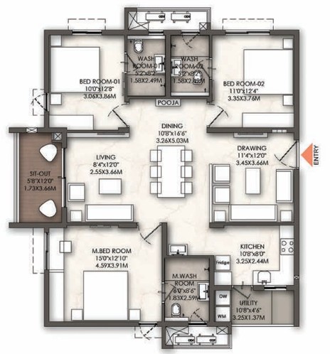 Life at Brigade Enclave is all about an upgrade. With wellness as main focus, it ensures you're healthy and growing. This project of 4.5 acres by Brigade Group creates a benchmark of standards in Moti Nagar, Hyderabad. The community is surrounded by greenery that uplifts the environment and improves the air quality. Living in such an area impacts your overall health and keeps the locality clean. The homes in 3 and 4 BHK are well-planned to create distinction. These homes create space, ranging from 1868 sq. ft. to 2632 sq. ft. You can choose the configuration that suits your personality and preferences. All the residents are treated equally with 20 shared amenities. These facilities are both sustainable and smart, striking the right balance, keeping you on top and supporting your practical needs. As you start living at Brigade Enclave in Moti Nagar, your life starts changing little by little every day. It will be a wise choice to belong here and see your future change.