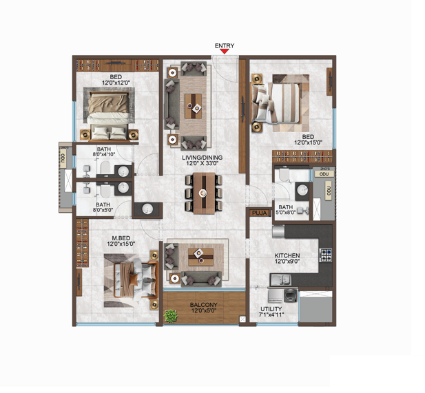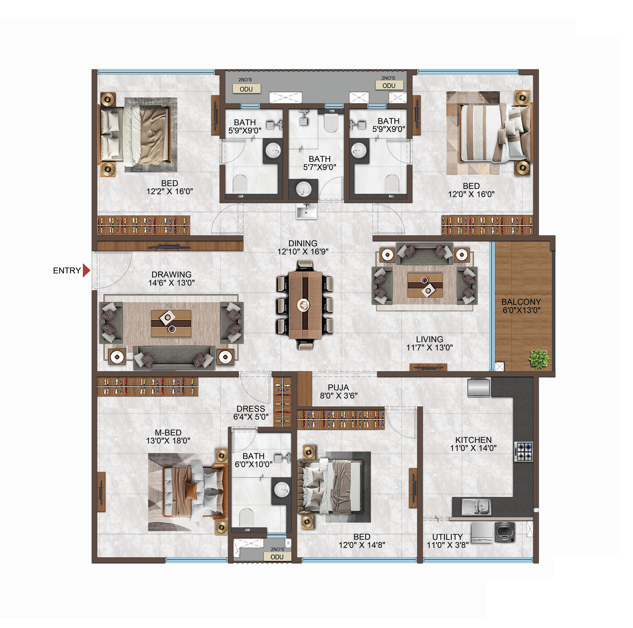 ?The community spans 3.72 acres and is enveloped by lush greenery and landscaped areas, creating a relaxing environment. The apartments themselves offer spacious interiors, with unit sizes ranging from 1827 sq. ft. to 2694 sq. ft., ensuring both full privacy and comfort for residents.