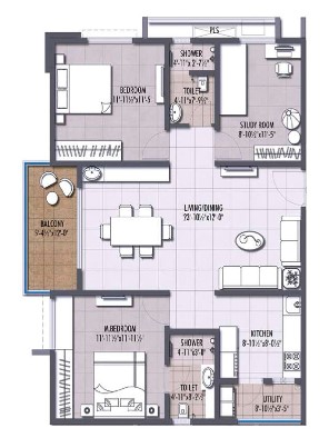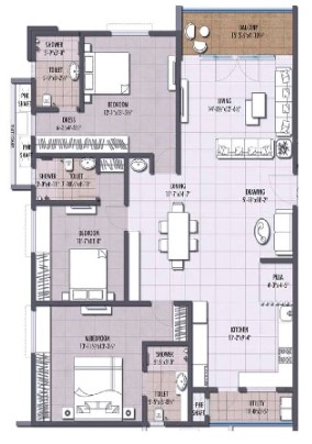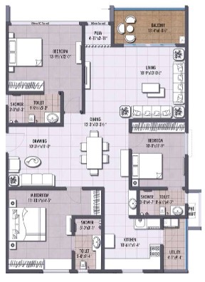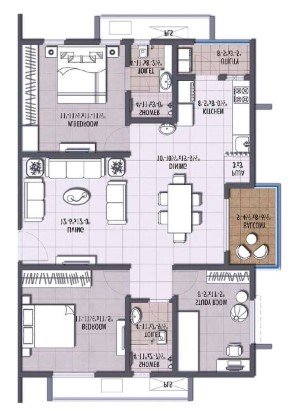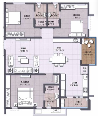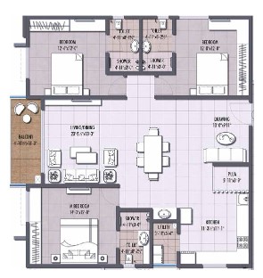 Living, Dining, Kitchen & All Bedrooms: Glazed vitrified tiles of reputed make as per design intent.
