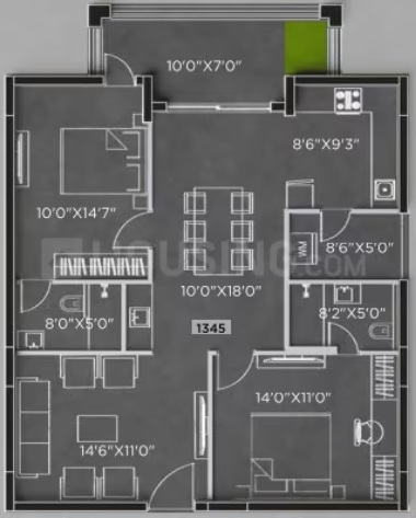 Power plug for Cooking Range Chimney, Refrigerator, Microwave Ovens, Mixer / Grinders in Kitchen, Washing Machine in Utility Area.