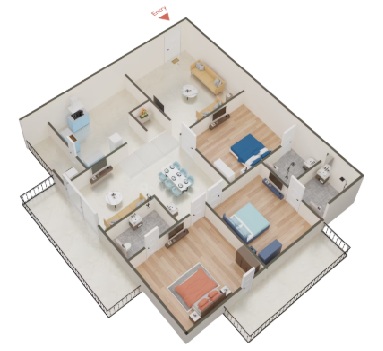 Living / Drawing / Dining / Bedrooms / Kitchen - Superior quality double charged Vitrified flooring with 800mmX800mm size of Aparna or Vermora, RAK or Equivalent quality.