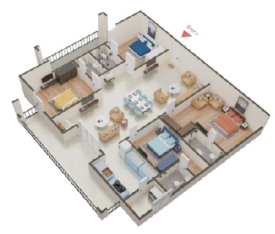 Split AC provision in living room and all bedrooms.