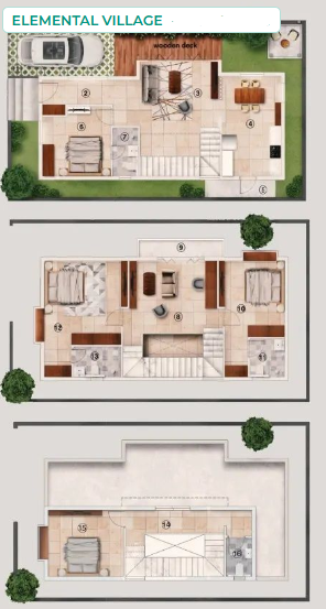 Balconies/Sit-outs: 600×600mm anti skid ceramic tile flooring.