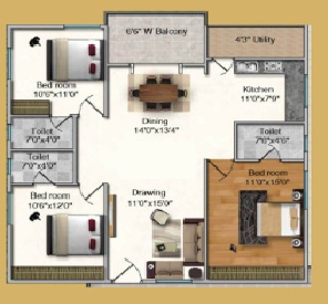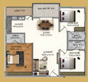 Bedrooms, multipurpose, and kitchen: 600 x 600 MM Polished Glazed Ceramic Tiles of reputed make.