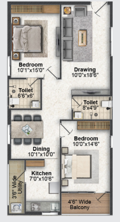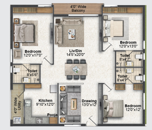 Unit sizes of the Greater Infras Lotus ranges from 1205 - 1855 Sq.Ft .