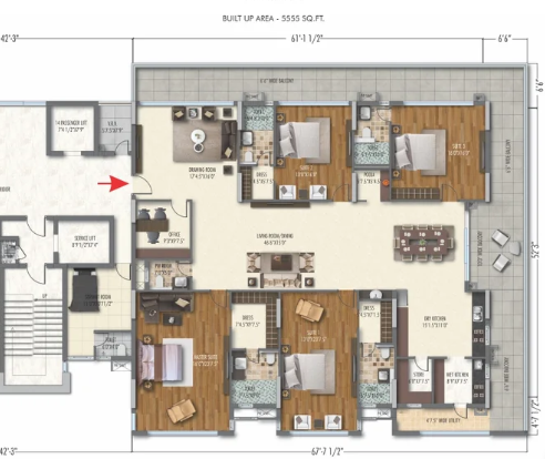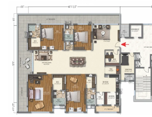 Foyer, office, drawing, living, dinning, puja, dry kitchen: