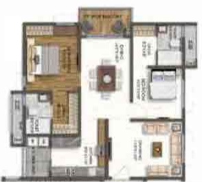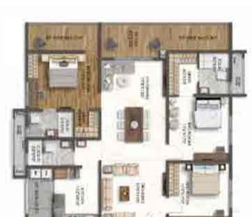 Bathrooms: 2 x 1 plus designer, anti-skid, ceramic tiles from Kajaria/Somany/icon/equivalent make; ceramic tiles up to 7 ft. height