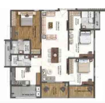 All bedrooms: Double charged vitrified tiles (600 mm x 600 mm) from Kajaria/Somany/icon/equivalent make with 100 mm high skirting.