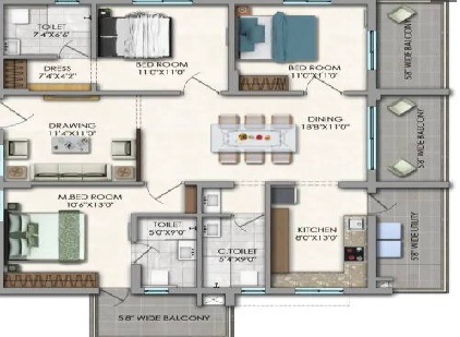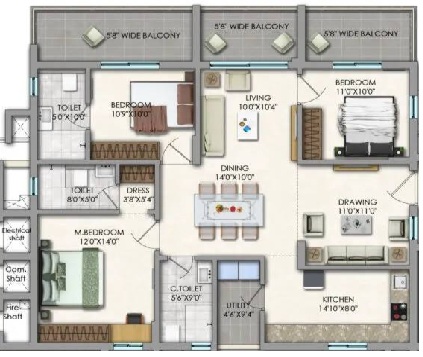 3) Telecom (All Bedrooms, Drawing and Living), Internet (Master Bedroom and Living).