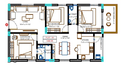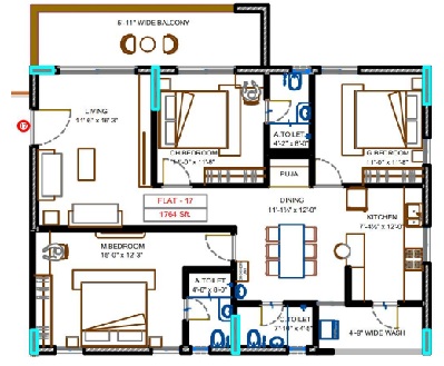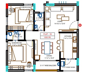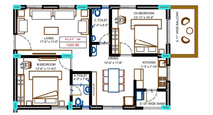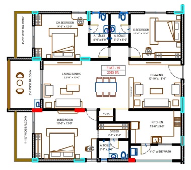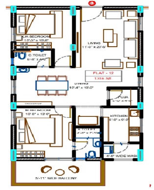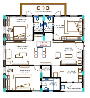 2. Wash-basin in master bedroom, toilet and dining area for 2 and 2.5 BHK flats, and in children's bedroom toilets in case of 3 BHK flat.
