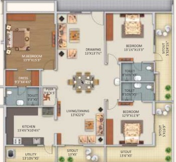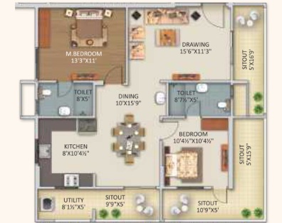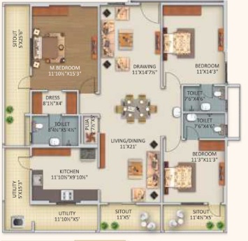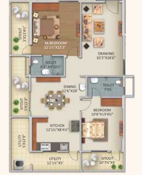 Provision for fixing of Water Purifier, Exhaust Fan/Chimney. Utilities/Wash: Washing Machine provision and wet area for washing utensils etc.