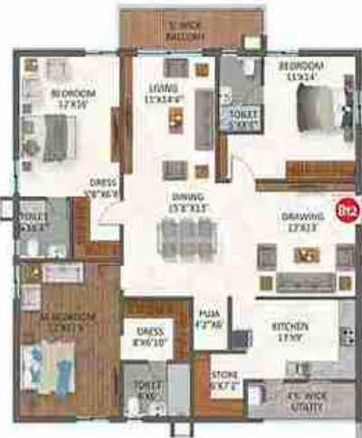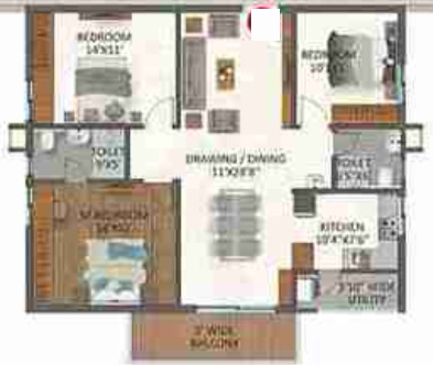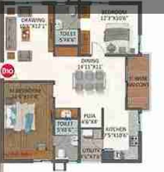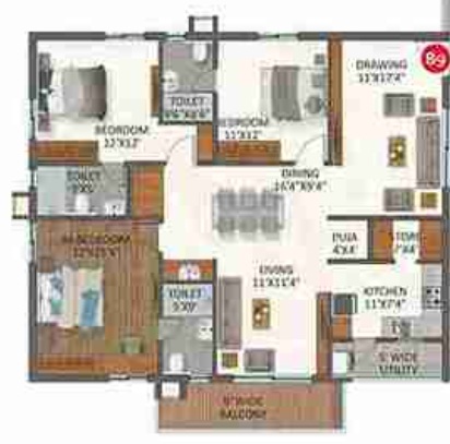 Utility and Wash area: Washing machine provision in utility area and dado tiles of size 600mm x 300mm up to 4 feet height.