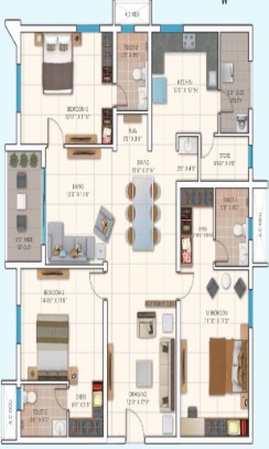 MAIN DOOR: Hard wood frame, finished with melamine spray polish. Teak finished flush shutters with reputed hardware.
